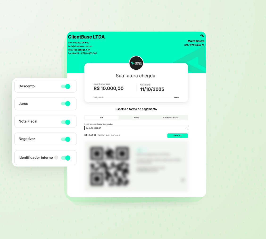 Assim, é possível reduzir a inadimplência com notificações automáticas de cobrança recorrente por WhatsApp, e-mail ou SMS, sempre acompanhadas de um link de pagamento simples e rápido.